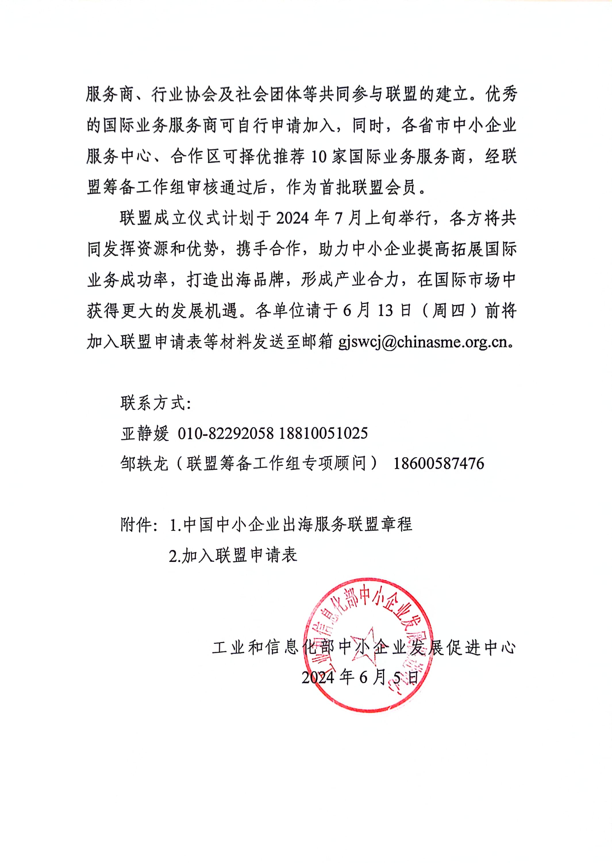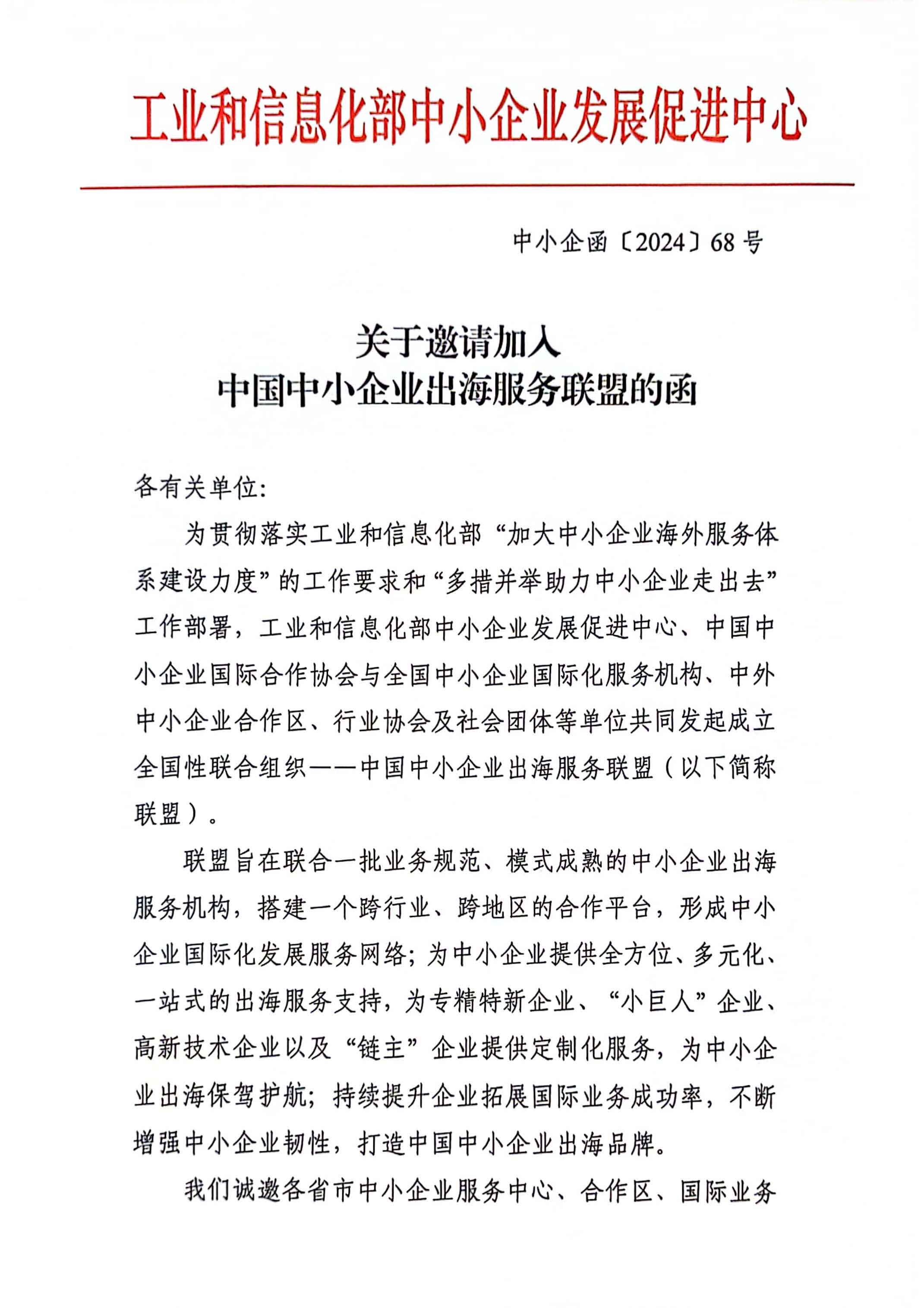 關(guān)于邀請(qǐng)加入中國中小企業(yè)出海服務(wù)聯(lián)盟的函